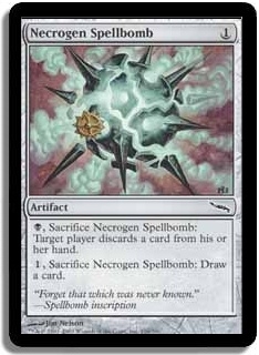B, Sacrifice Necrogen Spellbomb: Target player discards a card from his or her hand. 1, Sacrifice Necrogen Spellbomb: Draw a card.