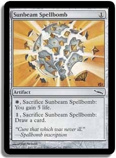 W, Sacrifice Sunbeam Spellbomb: You gain 5 life. 1, Sacrifice Sunbeam Spellbomb: Draw a card.