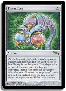 At the beginning of each player's upkeep, each player removes the top card of his or her library from the game. The player who removed the card with the highest converted mana cost takes an extra turn after this one. If two or more players' cards are tied for highest cost, the tied players repeat this process until the tie is broken.