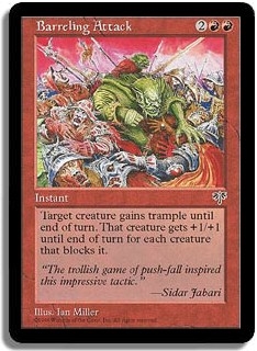 Target creature gains trample until end of turn. That creature gets +1/+1 until end of turn for each creature that blocks it.