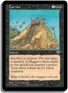 <Sacrifice a creature>: Put into play a number of Maggot tokens equal to the sacrificed creature's power. Treat these tokens as 0/1 black creatures.