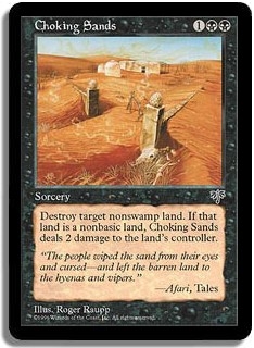 Destroy target non-swamp land. If that land is a non-basic land, Choking Sands deals 2 damage to the land's controller.