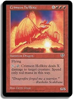 Flying. < X,T>: Crimson Hellkite deals X damage to target creature. Spend only red mana in this way.