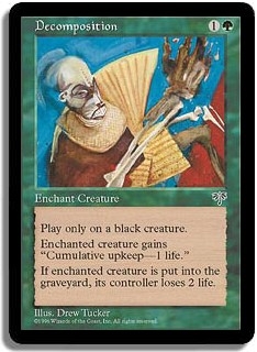 Play only on a black creature. Enchanted creature gains "Cumulative upkeep - 1 life." If enchanted creature is put into the graveyard, its controller loses 2 life.
