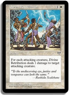 For each attacking creature Divine Retribution deals 1 damage to target attacking creature