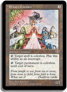 <T>: Target spell is colorless. Play this ability as an interrupt. <T>: Target permanent is colorless until end of turn.