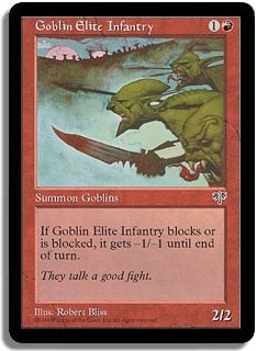 If Goblin Elite Infantry blocks or is blocked, it gets -1/-1 until end of turn.