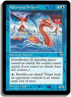 Islandhome. <U, Sacrifice an island>: Target land an opponent controls is an island until end of turn.