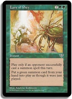 Play only if an opponent successfully cast a summon spell this turn. Put a green summon card from your hand into play as though it were just played.