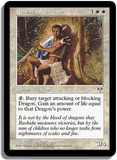 <T>: Bury target attacking or blocking Dragon. Gain an amount of life equal to that Dragon's power.