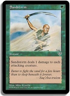Sandstorm deals 1 damage to each attacking creature.