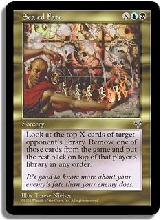 Look at the top X cards of target opponent's library. Remove one of those cards from the game and put the rest back on top of that player's library in any order.