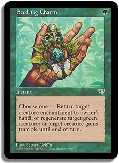 Choose one - Return target creature enchantment to owner's hand; or regenerate target green creature; or target creature gains trample until end of turn.