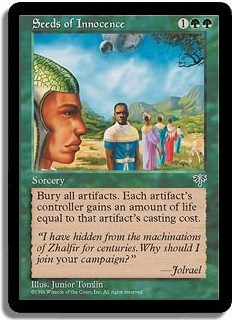 Bury all artifacts. Each artifact's controller gains an amount of life equal to that artifact's casting cost.