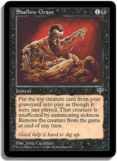Put the top creature card from your graveyard into play as though it were just played. That creature is unaffected by summoning sickness. Remove the creature from the game at the end of any turn.