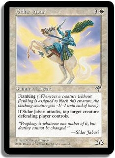Flanking. If Sidar Jabari attacks, tap target creature defending player controls.