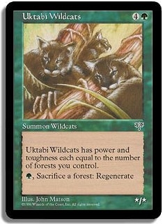 Uktabi Wildcats has power and toughness each equal to the number of forests you control. <G, Sacrifice a forest>: Regenerate.