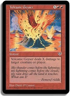 Volcanic Geyser deals X damage to target creature or player.