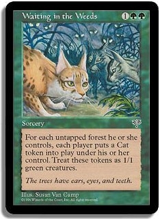For each untapped forest he or she controls, each player puts a Cat token into play under his or her control. Treat these tokens as 1/1 green creatures.