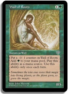 <Put a -0/-1 counter on Wall of Roots>: Add <G> to your mana pool. Play this ability as a mana source. Use this ability only once each turn.