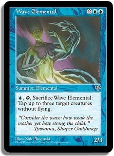 <U,T, Sacrifice Wave Elemental>: Tap up to three target creatures without flying.
