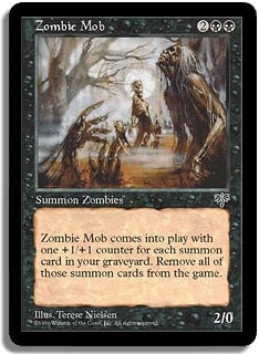 Zombie Mob comes into play with one +1/+1 counter for each summon card in your graveyard. Remove all of those summon cards from the game.