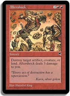Destroy target artifact, creature, or land. Aftershock deals 3 damage to you.