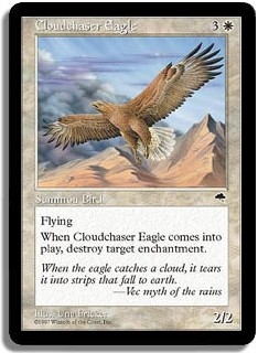 Flying. When Cloudchaser Eagle comes into play, destroy target enchantment.