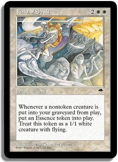 Whenever a nontoken creature is put into your graveyard from play, put an Essence token into play. Treat this token as a 1/1 white creature with flying.