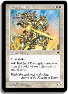 First Strike. <WW>: Knight of Dawn gains protection from the color of your choice until end of turn.