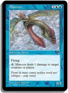 Flying. <T>: Mawcor deals 1 damage to target creature or player.