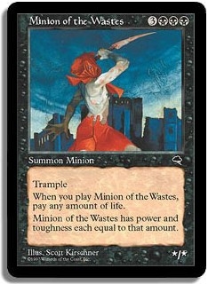 Trample. When you play Minion of the Wastes, pay any amount of life. Minion of the Wastes has power and toughness each equal to that amount.