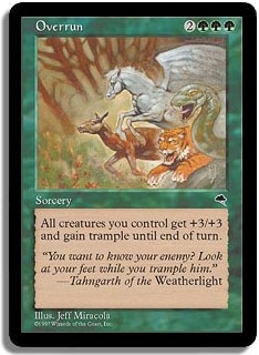 All creatures you control get +3/+3 and gain trample until end of turn.