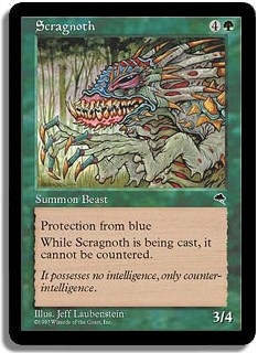 Protection from Blue. While Scragnoth is being cast, it cannot be countered.