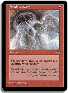 Shadowstorm deals 2 damage to every creature with shadow.