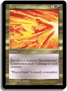 <Sacrifice a creature>: Spontaneous Combustion deals 3 damage to each creature.