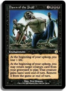At the beginning of your upkeep, you may return taarget creature card from your graveyard to play. That creature gains haste until end of turn. Remove it from the game at end of turn.