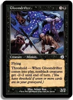 Threshold - When Gloomdrifter comes into play, nonblack creatures get -2/-2 until end of turn