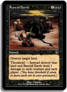 Threshold - Instead destroy that land and Rancid Earth deals 1 damage to each creature and each player.