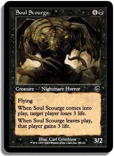 When Soul Scourge comes into play, target player loses 3 life.