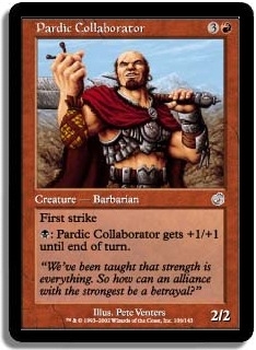 B: Pardic Collaborator gets +1/+1 until end of turn.