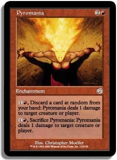 1R, Sacrifice Pyromania: Pyromania deals 1 damage to