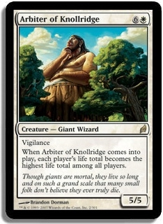 Vigilance When Arbiter of Knollridge comes into play, each player's life total becomes the highest life total among all players.