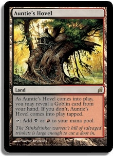As Auntie's Hovel comes into play, you may reveal a Goblin card from your hand. If you don't, Auntie's Hovel comes into play tapped. T Add B or R to your mana pool.