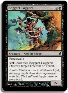 Forestwalk 2B, Sacrifice Boggart Loggers: Destroy target Treefolk or Forest.