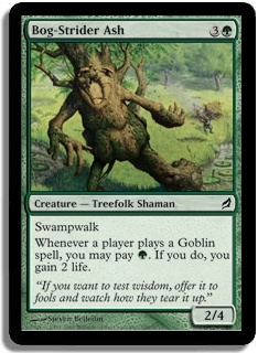Swampwalk Whenever a player plays a Goblin spell, you may pay G. If you do, you gain 2 life.