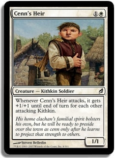 Whenever Cenn's Heir attacks, it gets +1/+1 until end of turn for each other attacking Kithkin.