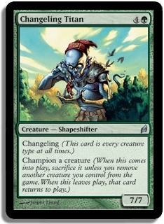 Changeling (This card is every creature type at all times.) Champion a creature (When this comes into play, sacrifice it unless you remove another creature you control from the game. When this leaves play, that card returns to play.)