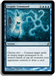 Choose two - Counter target spell; or return target permanent to its owner's hand; or tap all creatures your opponents control; or draw a card.