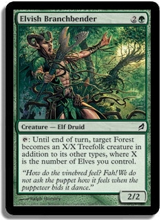 T Until end of turn, target Forest becomes an X/X Treefolk creature in addition to its other types, where X is the number of Elves you control.
